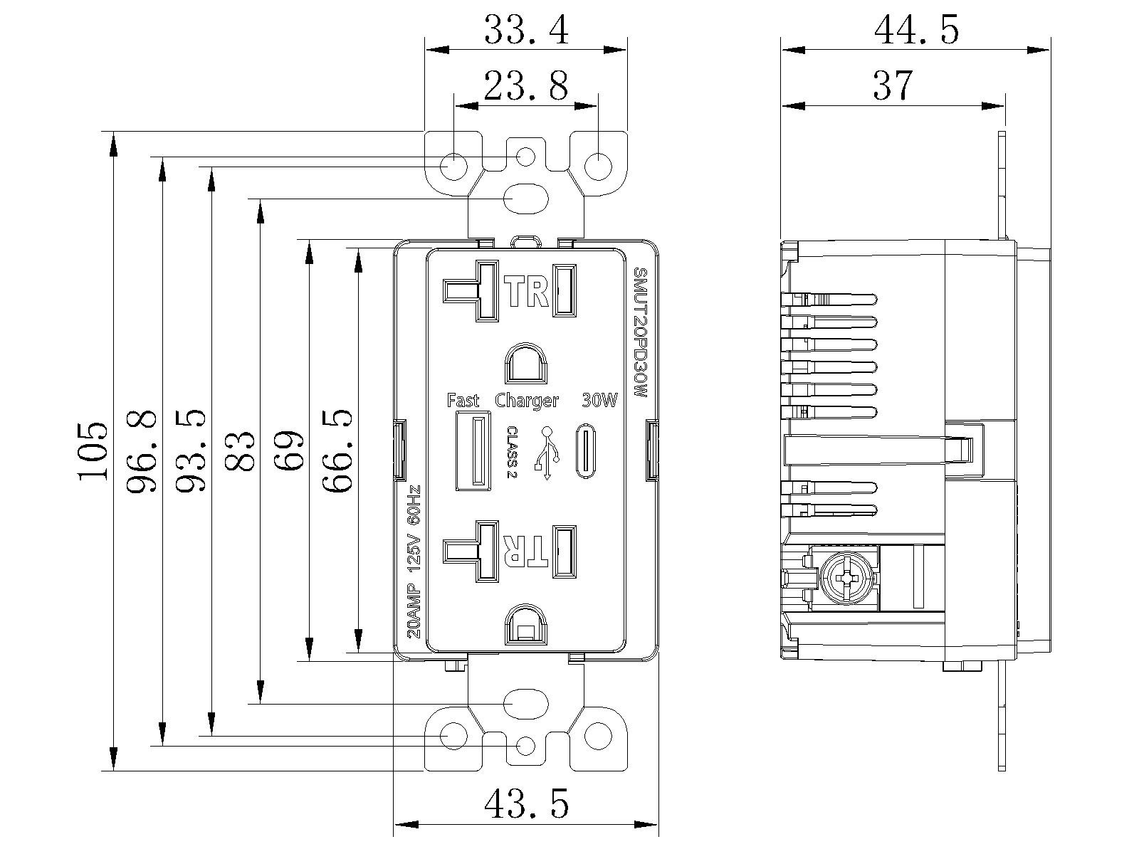 125V 15/20A 60Hz fast charging 30W,